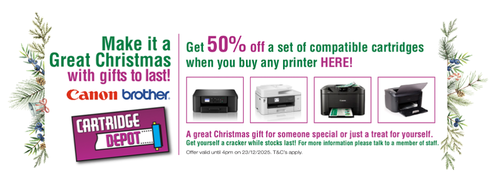 • Bring your empty cartridge in store and get a discount on you purchase (T&C’s Apply)